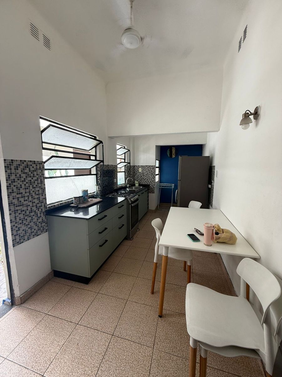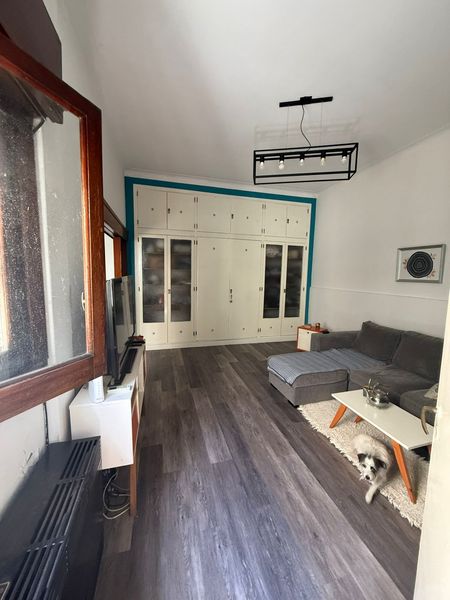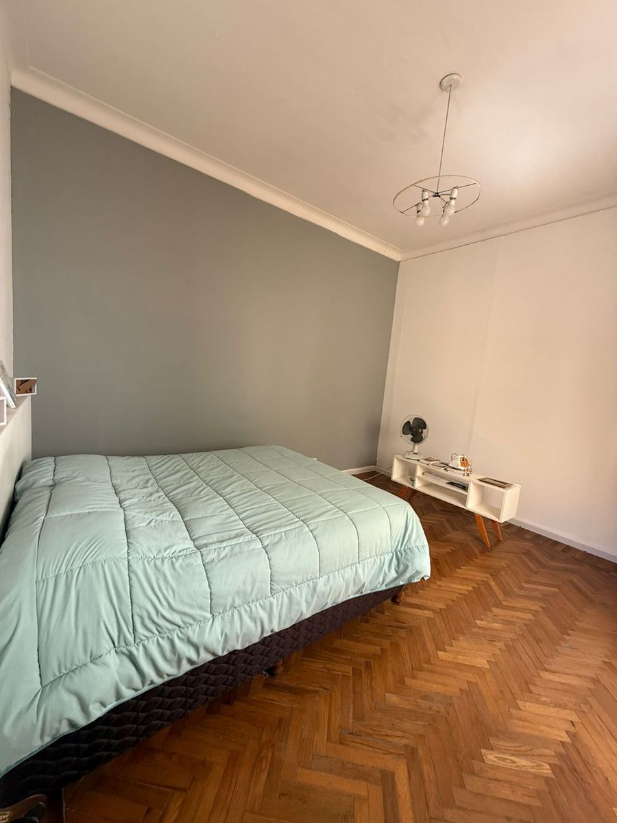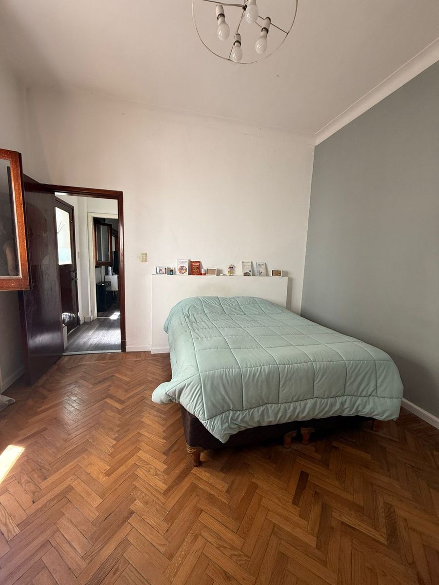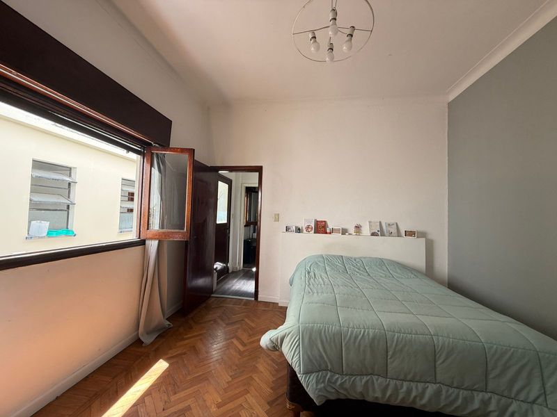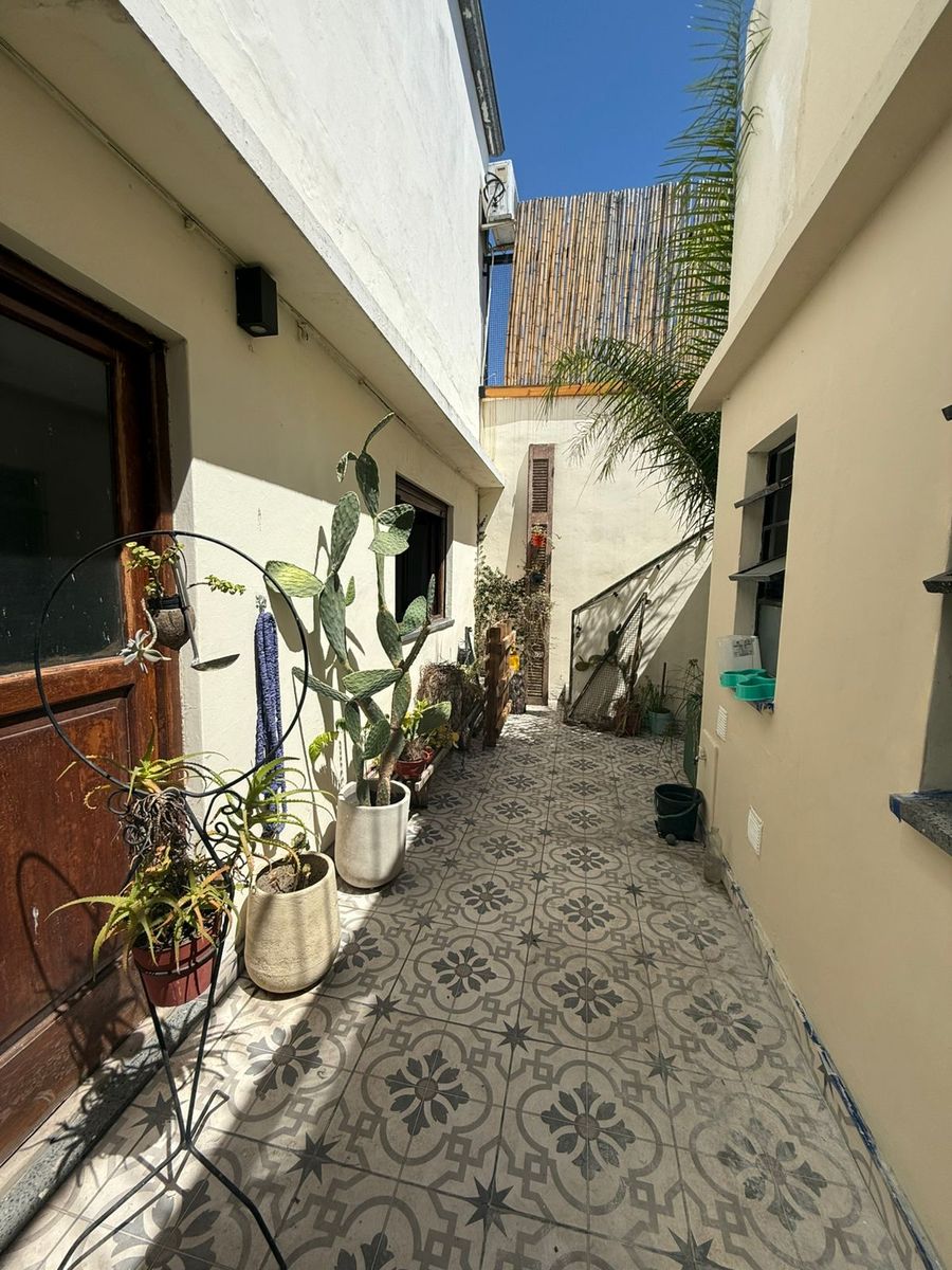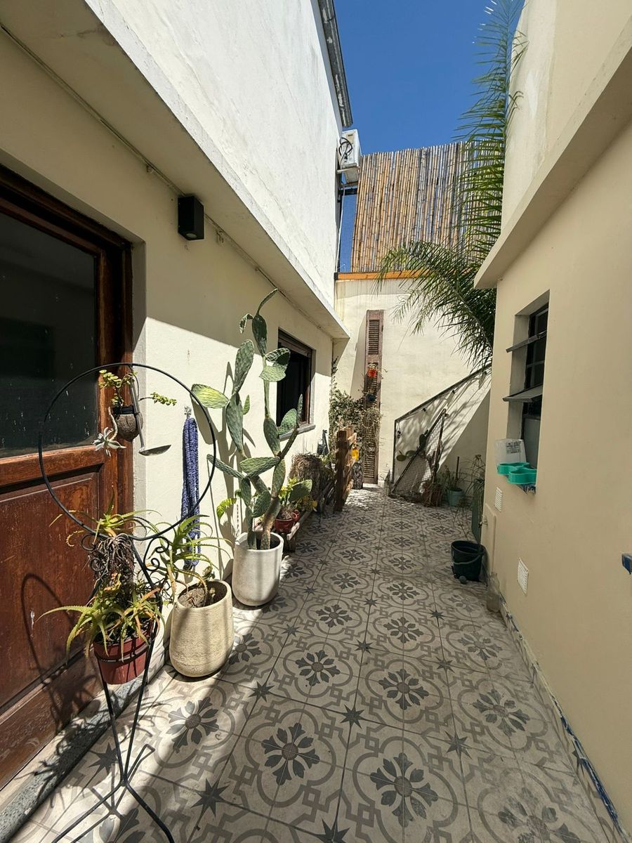 El inmueble posee en planta baja una hermosa cocina reciclada de 2,24 x 5,57 con espacio para el lavarropas y para comedor diario, salida al patio, donde hay un baño de servicio, por otro sector hay una sala con puertas de vidrio, ideal para biblioteca, de 3 x 2,85 mts, amplio living de pisos de madera de 4,56 x 3,80, con gran placard de pared completa, con aire acondicionado y estufa tiro balanceada. Cómodo baño con bañera, dormitorio de 4,12 x 3,70 aprox.