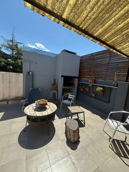 Ingresando por el patio descubierto se encuentra en la terraza un hermoso lugar de reuniones sociales con parrilla y quincho con aire acondicionado, ideal para trabajo en casa o realizar hobbies.